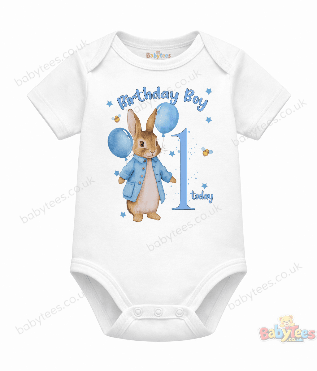 “Birthday Boy – 1 Today” Baby Bodysuit – Bunny & Balloons Design