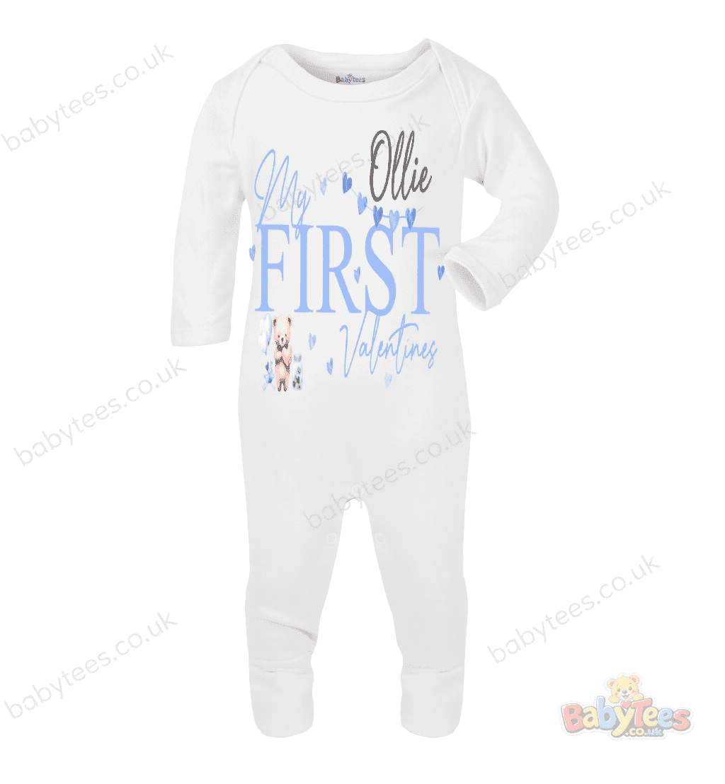 Adorable Personalised Baby Bodysuit First Valentines – Cute Teddy Bear Design