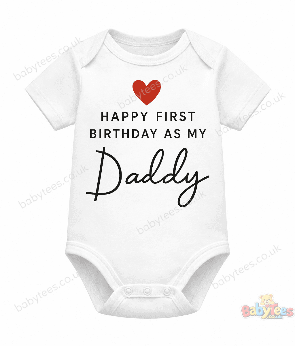 Celebrate a truly special moment with our “Happy First Birthday as My Daddy” baby bodysuit — a sweet and thoughtful way to mark Daddy’s first birthday as a parent. Whether it’s worn for a surprise photo shoot, a birthday breakfast reveal, or a keepsake memory box, this outfit is guaranteed to melt hearts.