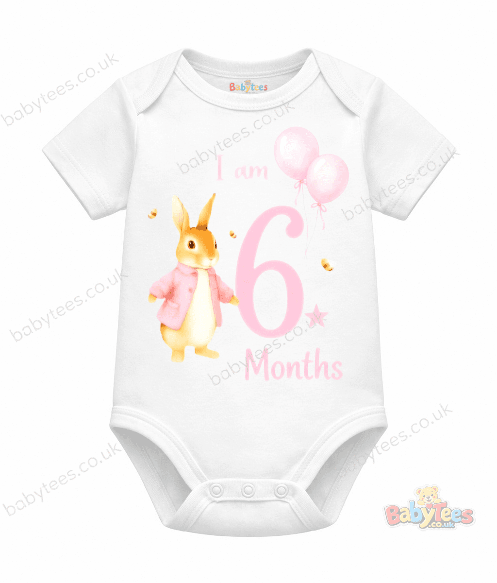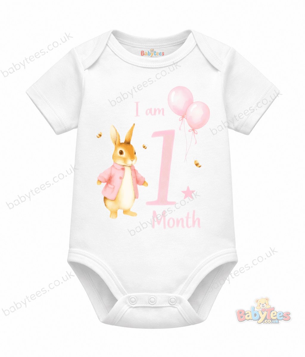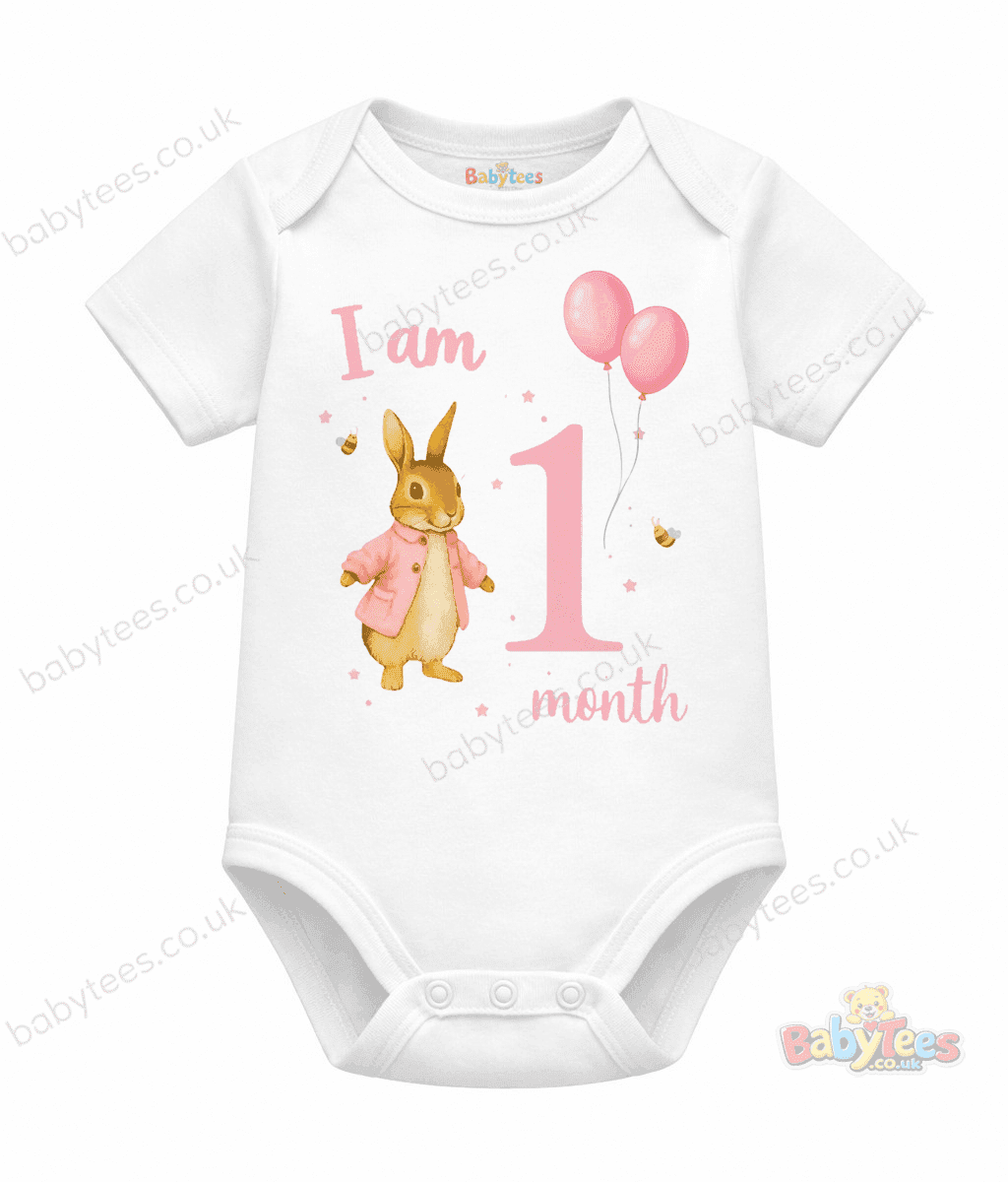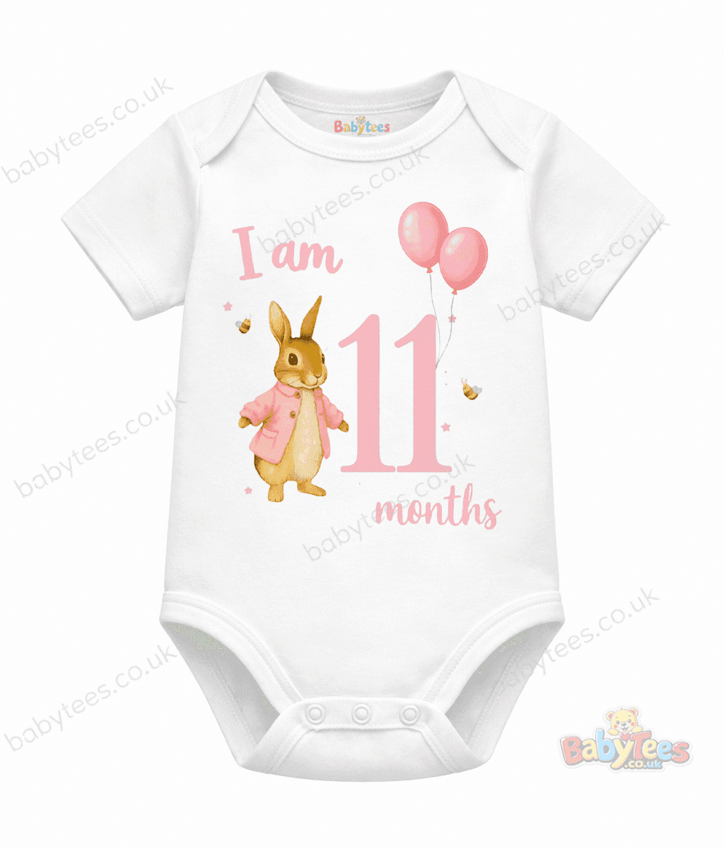 Personalised Baby Bodysuit – Bunny & Balloons “I Am [1–11] Month” Design (BabyTees®)