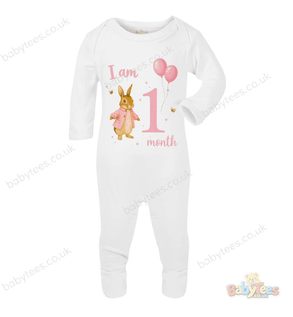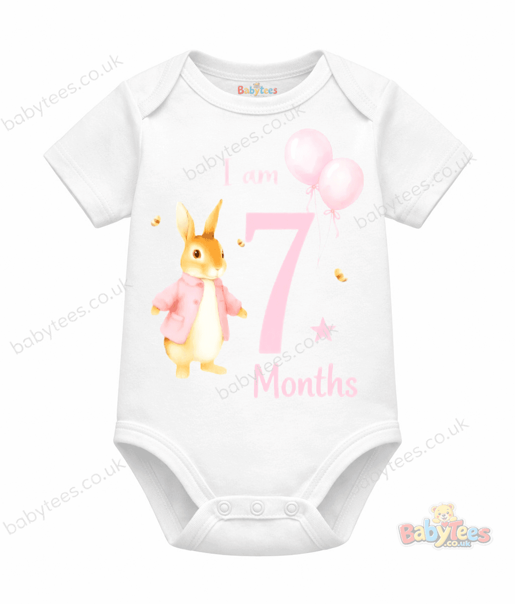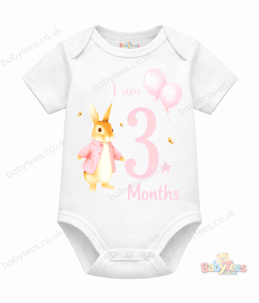 Personalised Baby Bodysuit – Bunny & Balloons “I Am [1–11] Month” Design (BabyTees®)