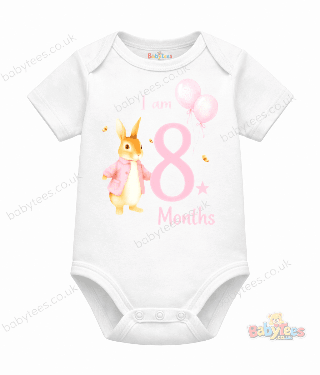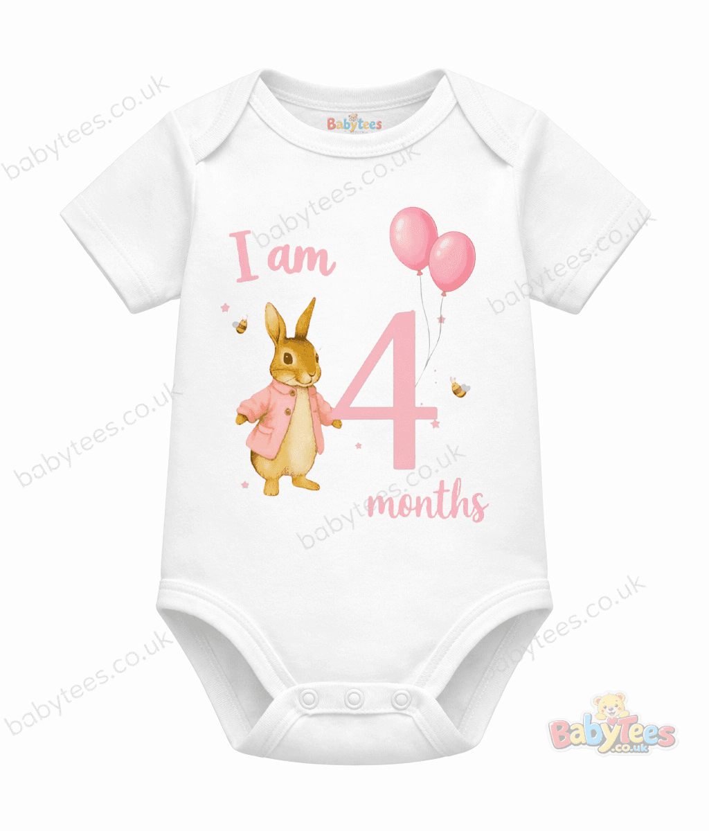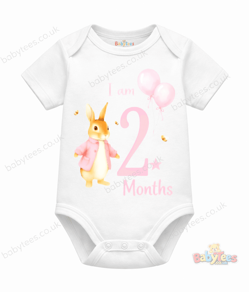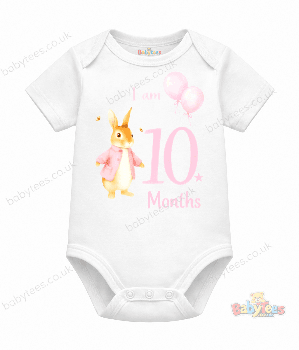 Personalised Baby Bodysuit – Bunny & Balloons “I Am [1–11] Month” Design (BabyTees®)