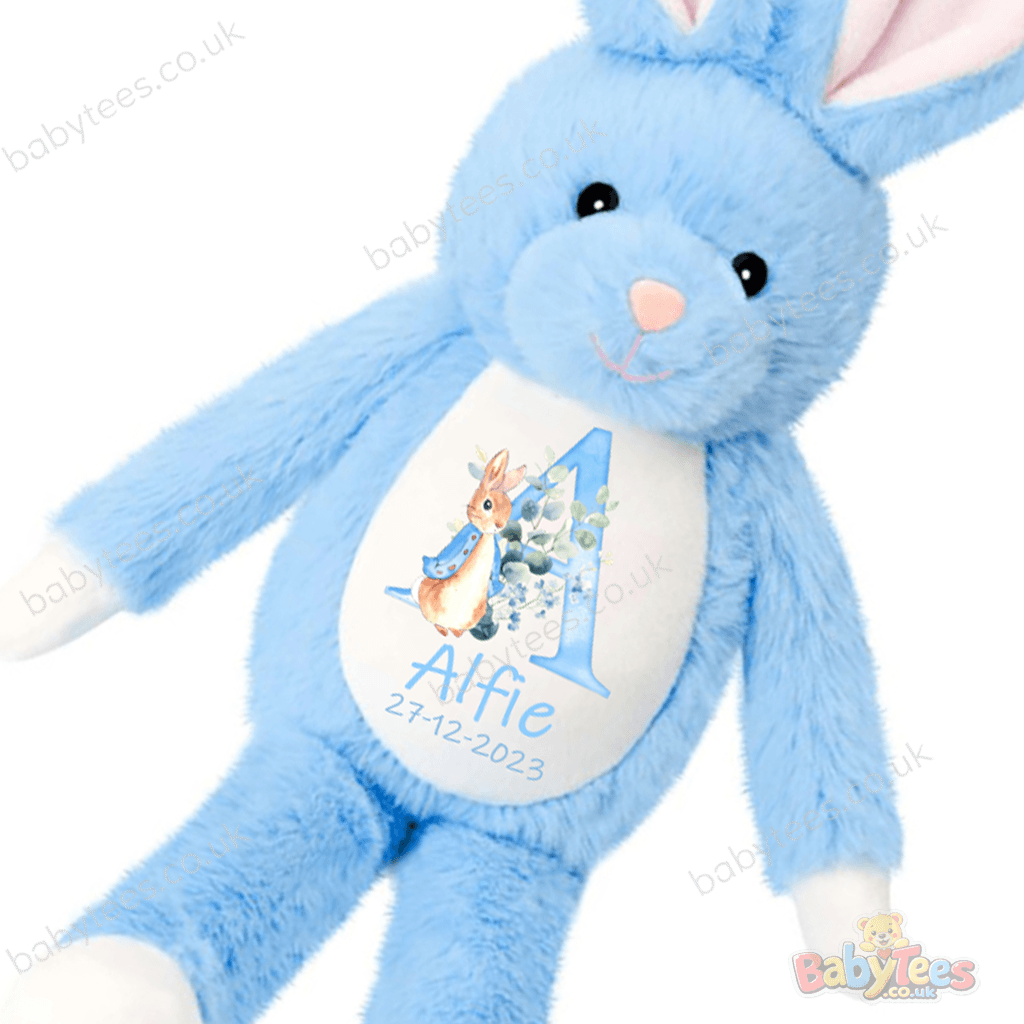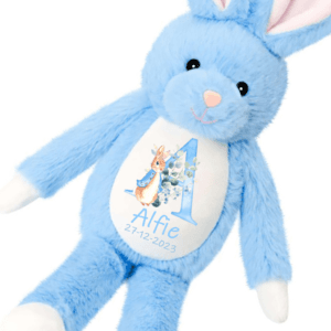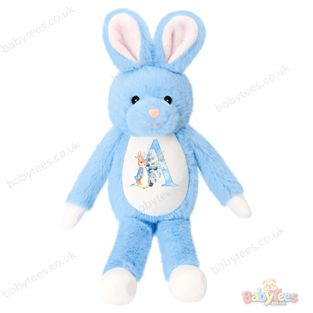 Personalised teddy bear with letter A–Z designs are now available in our soft blue bunny plush collection. Each teddy features your chosen letter (A–Z) with a floral bunny illustration wearing a blue jacket, plus space to add a name underneath for a beautifully personalised finish.