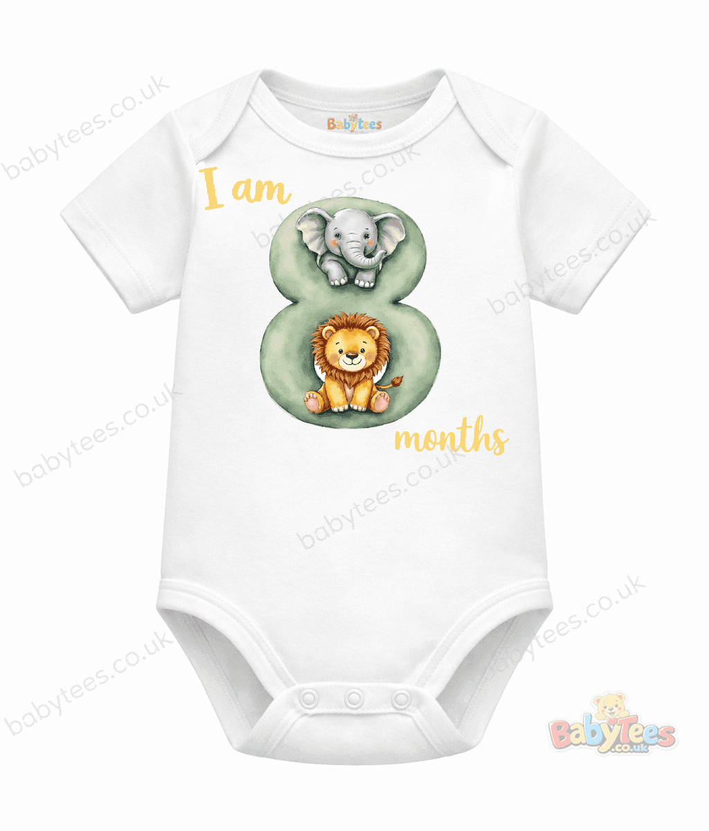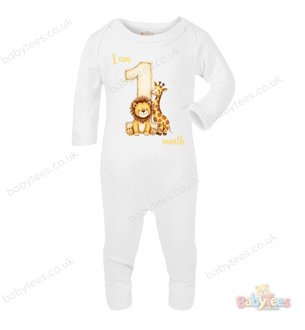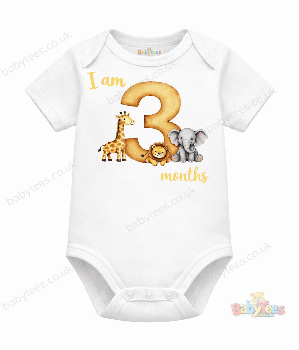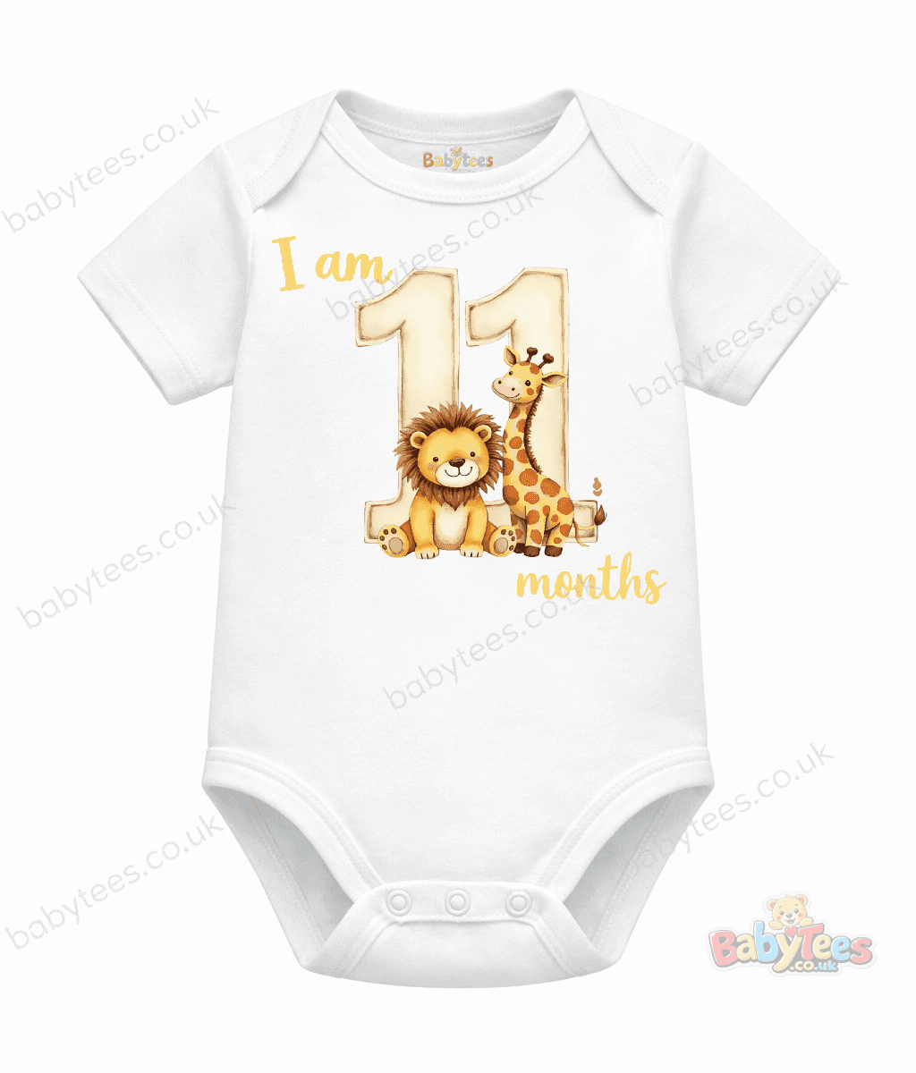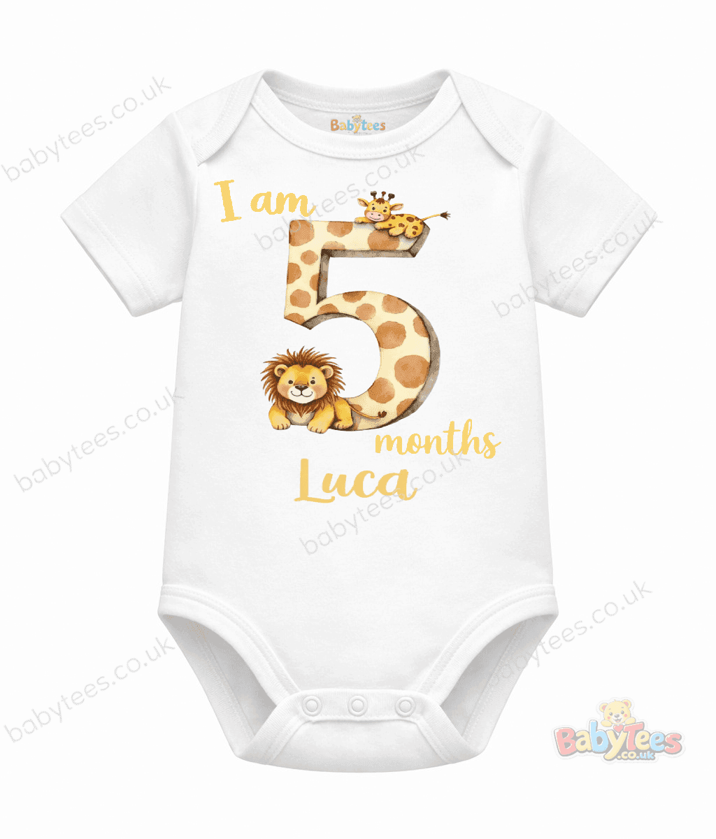 Personalised Baby Bodysuit Safari Month – Adorable I Am [1–11] Month Milestone Design