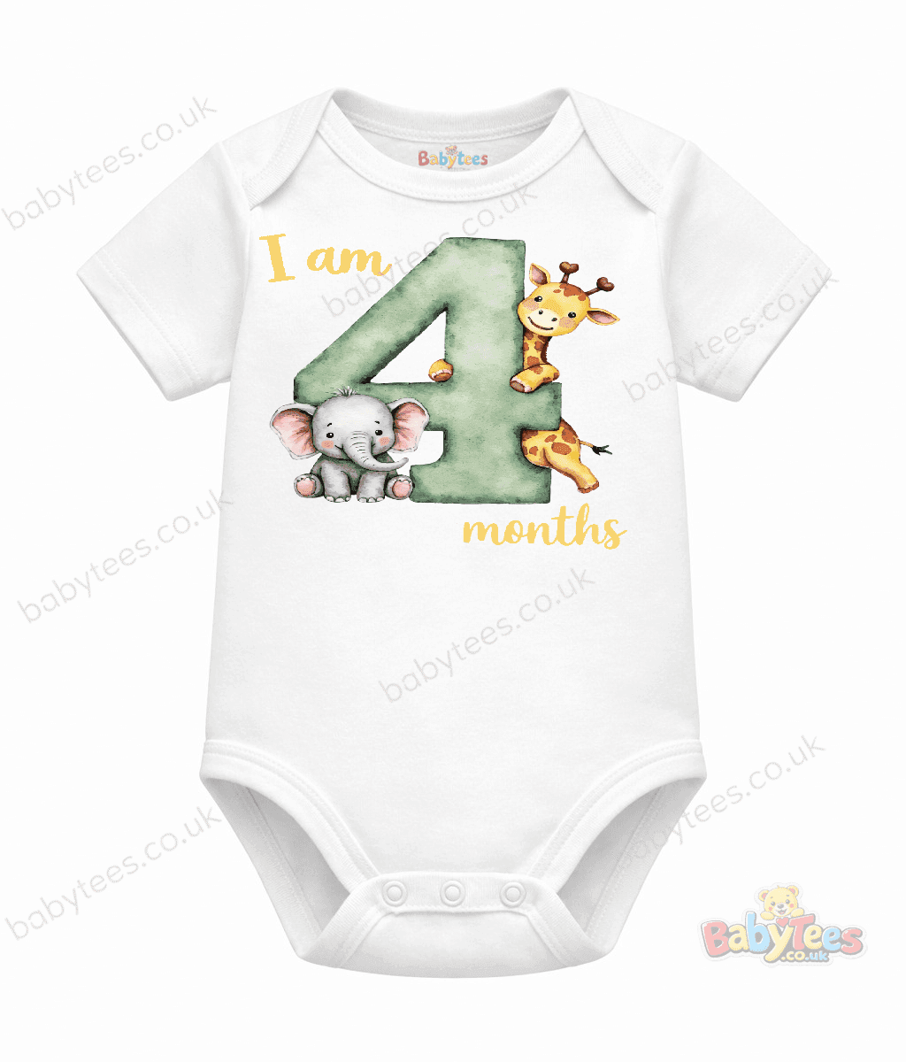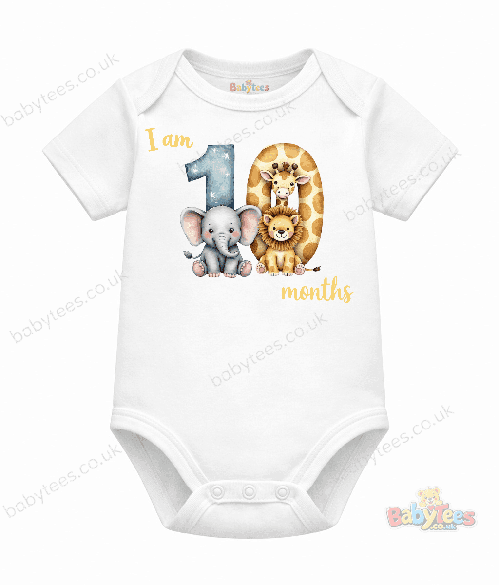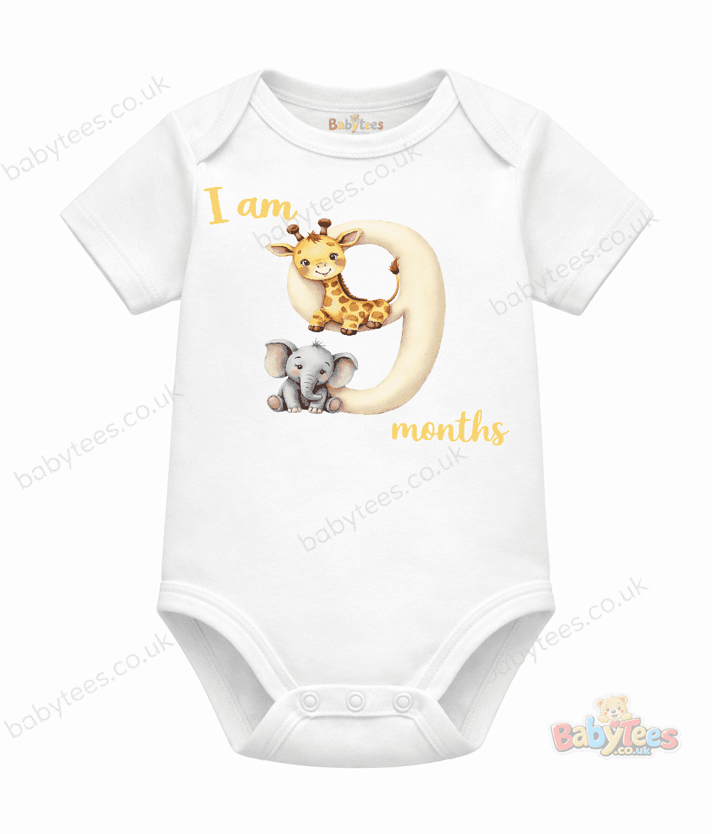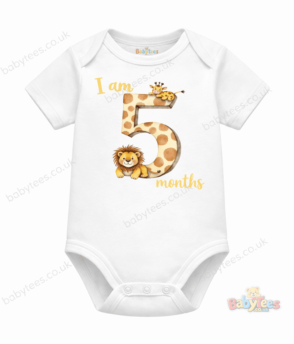 Personalised Baby Bodysuit Safari Month – Adorable I Am [1–11] Month Milestone Design